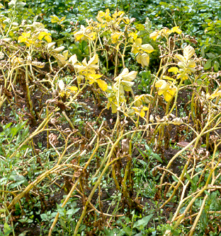 emerging from the potato leaves [below], and correctly concluded that the fungus caused
