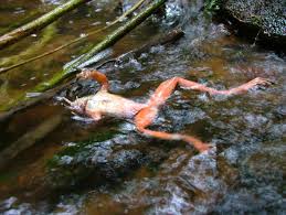 No one knows why this fungus would suddenly begin killing frogs in places as diverse as Australia and Panama. The fungus may have been transported to these places only recently - perhaps even on the boots or equipment of researchers studying the disappearance of frogs. Or the fungus may have been present for a long time but frogs are now succumbing because their immune systems have been impaired by recent environmental changes. One obvious change is increased ultraviolet light, which is known to damage immune systems of animals. Recently, chlorinated chemicals released by humans have attacked the ozone layer in the upper atmosphere, allowing 10% more U/V light to reach the Earth's surface. Industrial chemicals may also be damaging the frogs' immune systems. Retinoids are under suspicion because they cause birth defects in many animals, including frogs and humans. Accutane, used to treat acne, is a retinoid known to cause birth defects in humans. If you are interested in pursuing this topic, I suggest you search for more information on the internet: check out the archives of Rachel, an internet environmental magazine. In 2013 a new problem fungus has been discovered that attacks salamanders. It has been named Batrachochytrium salamandrivorans. Check out Martel et al. 2013 PNAS 110: 15325-15329.